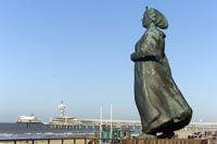 Een blikvanger naast dit namenmonument is het beeld dat Gerard Bakker maakte van de anonieme vissersvrouw die over de zee tuurt.